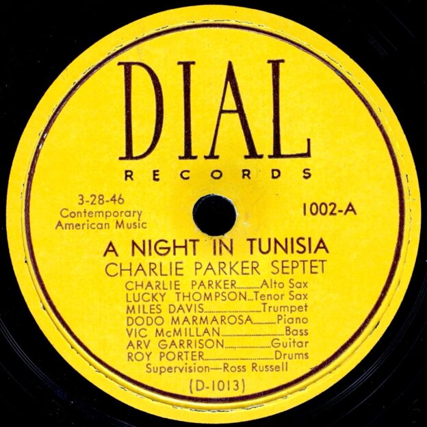 Charlie Parker Septet, “A Night in Tunisia” / “Ornithology” (Dial 1002) Collection Favorites > Original pressing Recorded March 28, 1946 at Radio Recorders, Los Angeles A A Night in Tunisia B Ornithology Selection: “Ornithology” (Parker-Harris) https://dgmono.com/wp-content/uploads/2025/09/Dial-1002-Ornithology.mp3