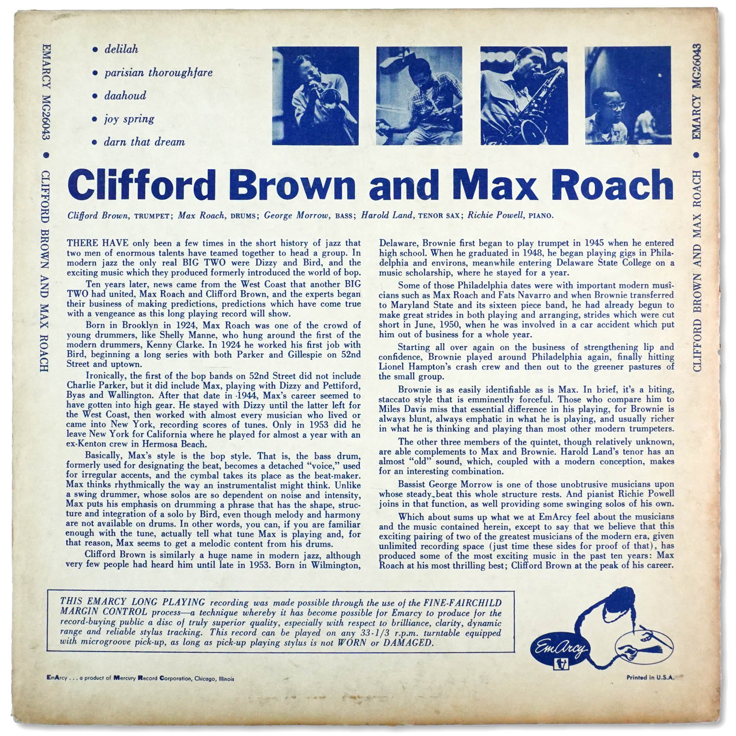 Clifford Brown & Max Roach (EmArcy 26043) Collection Favorites > Original 10 inch pressing Recorded August 2-6, 1954 at Capitol Studios, Los Angeles 1 Delilah 2 Parisian Thoroughfare 3 Daahoud 4 Joy Spring 5 Jordu Selection: “Jordu” (Brown) https://dgmono.com/wp-content/uploads/2026/03/MG-26043-Jordu.mp3