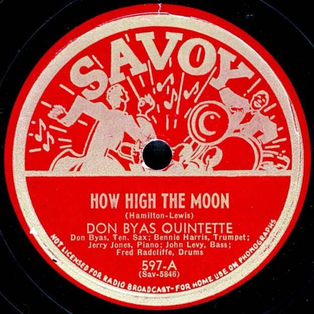 Don Byas / Charlie Parker, “How High the Moon” / “Ko Ko” (Savoy 597) Collection Favorites > Original pressing Recorded November 26, 1945 at WOR Studios NYC A How High the Moon B Ko Ko Selection: “Ko Ko” (Parker) https://dgmono.com/wp-content/uploads/2025/09/Savoy-597-Ko-Ko.mp3