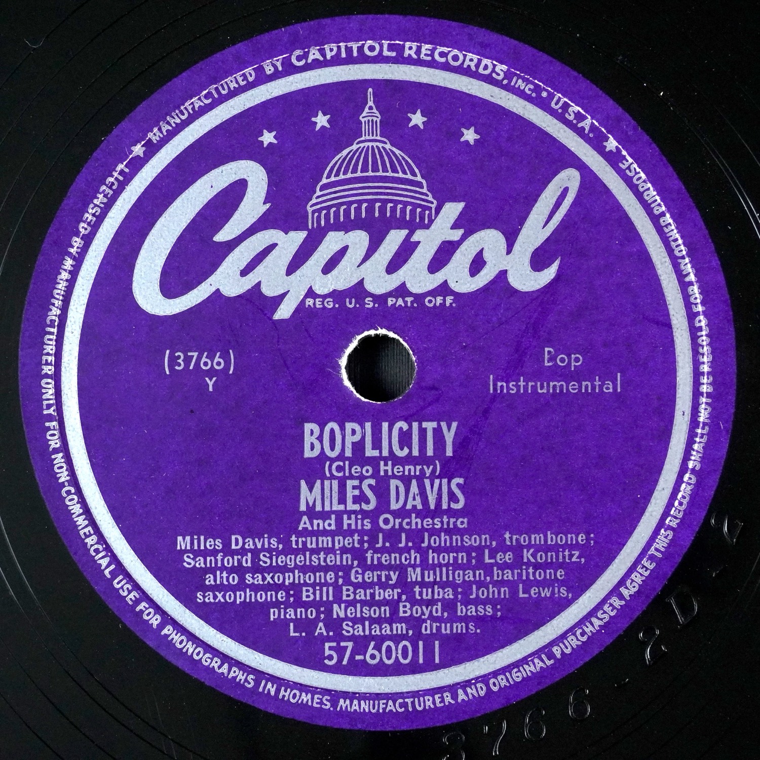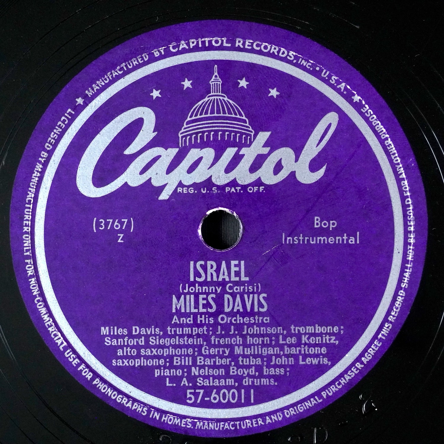 Miles Davis & His Orchestra, “Boplicity” / “Israel” (Capitol 57-60011) Collection Favorites > Original pressing Recorded April 22, 1949 at WMGM Studio NYC A Boplicity B Israel Selections: “Boplicity” (Henry) https://dgmono.com/wp-content/uploads/2025/09/Miles-Capitol-Boplicity.mp3 “Israel” (Carisi) https://dgmono.com/wp-content/uploads/2025/09/Miles-Capitol-Israel.mp3