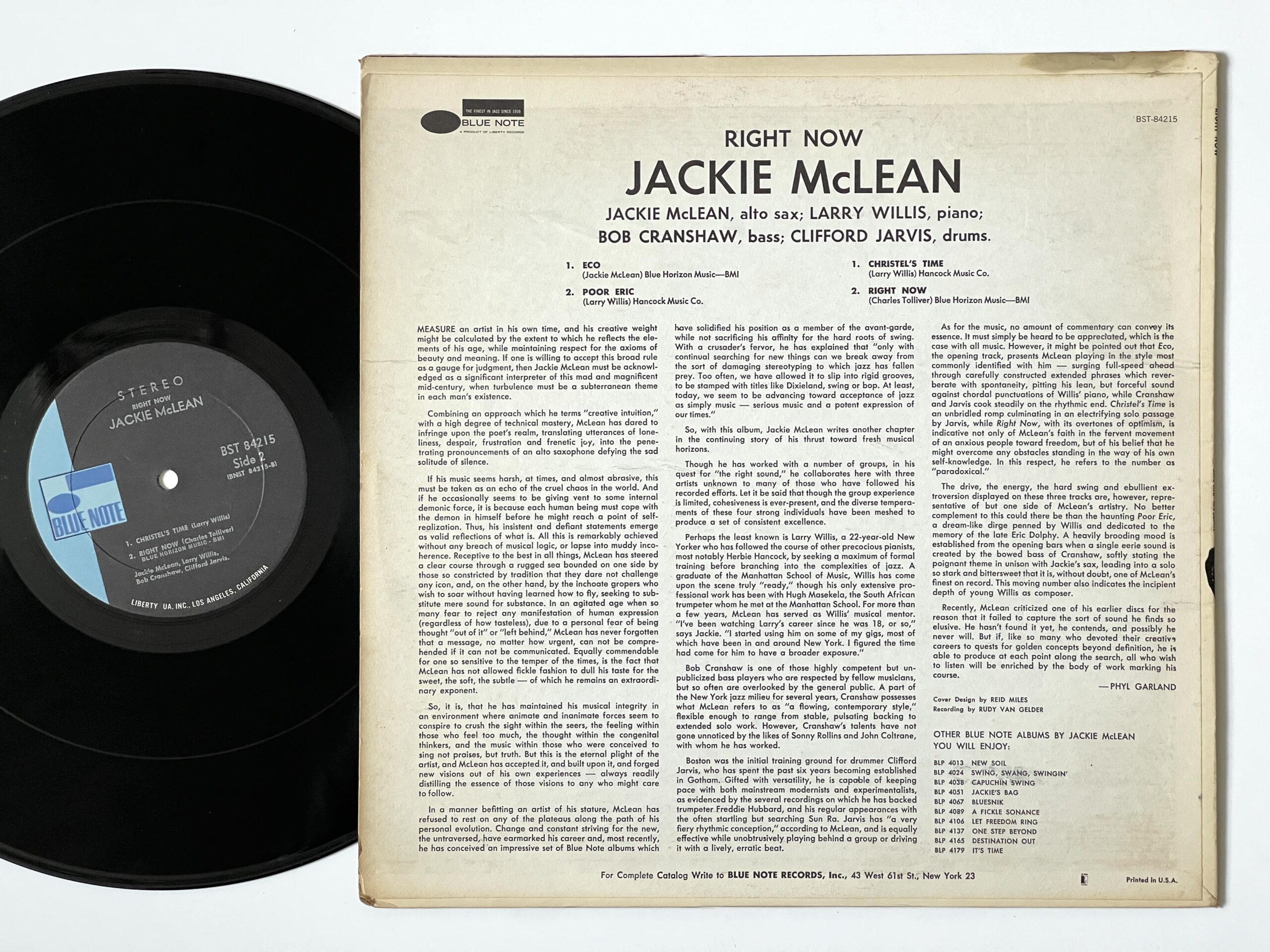 Jackie McLean, Right Now (Blue Note 84215) Liberty/UA RVG Stereo Pressing