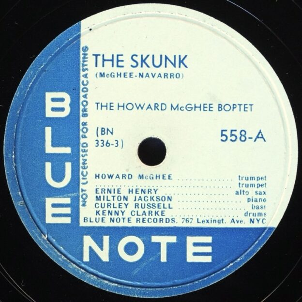The Howard McGhee Boptet, “The Skunk” / “Boperation” (Blue Note 558) Collection Favorites > Original pressing Recorded October 11, 1948 at Apex Studios NYC A The Skunk B Boperation Selections: “The Skunk” (McGhee-Navarro) https://dgmono.com/wp-content/uploads/2025/09/BN-558-The-Skunk.mp3 “Boperation” (Navarro) https://dgmono.com/wp-content/uploads/2025/09/BN-558-Boperation.mp3
