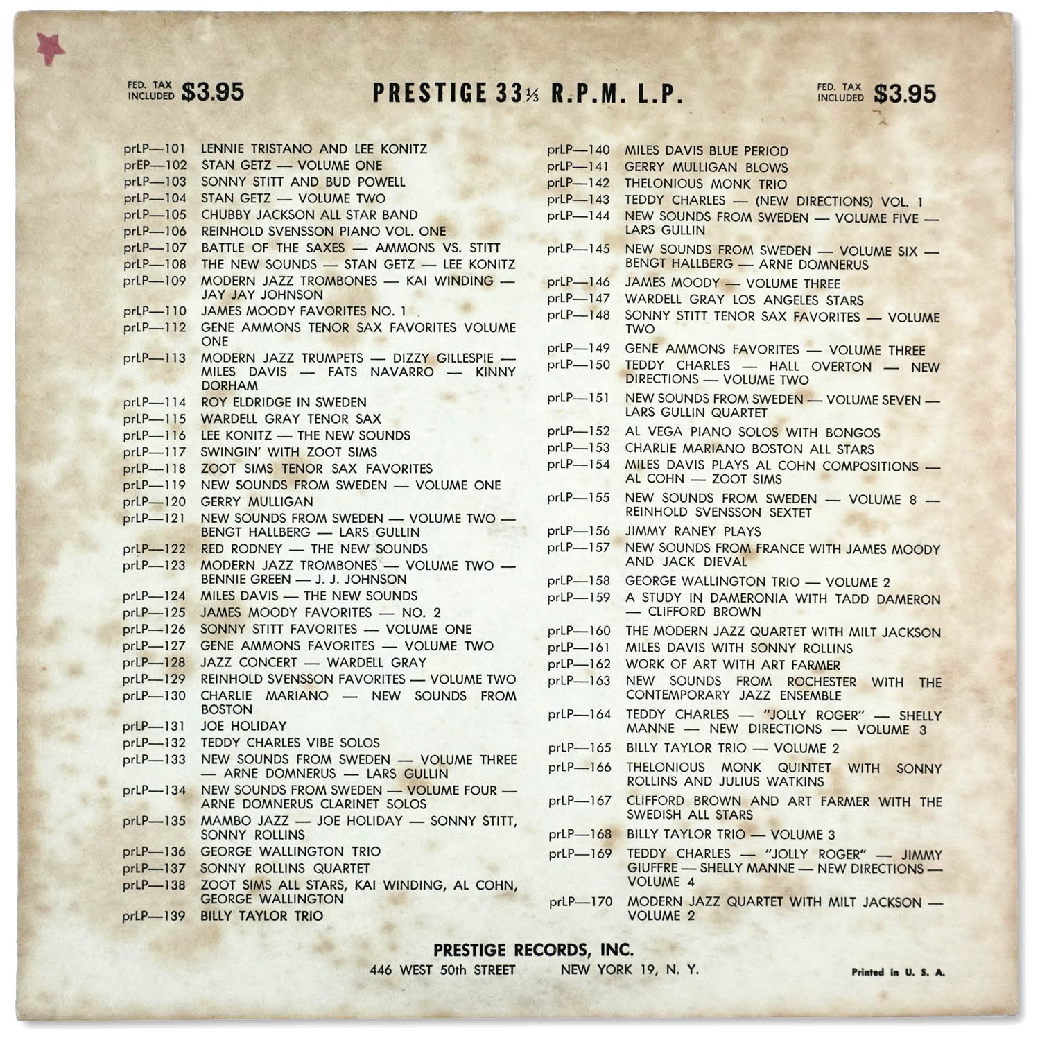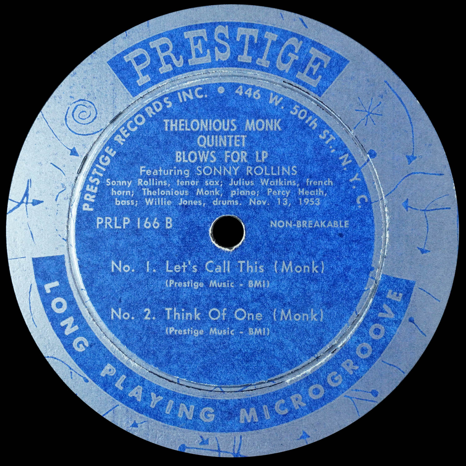 Thelonious Monk Quintet Blows for LP (Prestige 166) Collection Favorites > Original 10-inch pressing Recorded November 13, 1953 at WOR Studios NYC 1 Friday the Thirteenth 2 Let’s Call This 3 Think of One Selection: “Let’s Call This” (Monk) https://dgmono.com/wp-content/uploads/2026/03/PRLP-166-Lets-Call-This.mp3